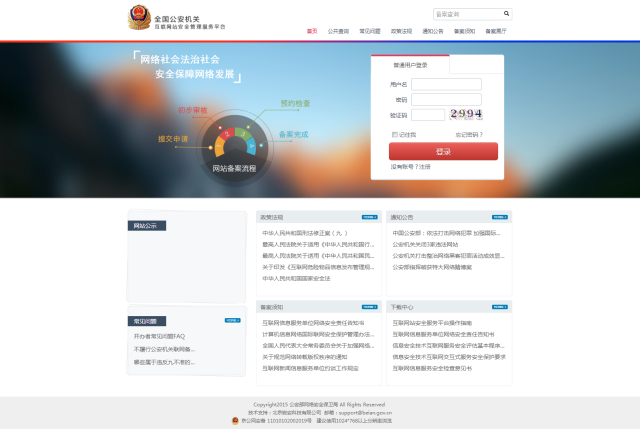 Èý¡¢Ìá½»±¸°¸ÒÔºóµÈ´ý¹«°²·Ö¾ÖÍø°²´ó¶Ó½øÐÐÉóºË£¬¶ÔÓڷǽ»»¥Ê½ÍøÕ¾£¬·Ö¾ÖÍø°²´ó¶ÓÉóºËºó¿ÉÖ±½Ó·¢·Å±¸°¸±àºÅ£»¶ÔÓÚ½»»¥Ê½ÍøÕ¾£¬·Ö¾ÖÍø°²´ó¶Ó½øÐÐÍøÉϺËÑéºó½«Í¨¹ýµç»°»ò¶ÌÐÅÍ¨ÖªÍøÕ¾Ö÷ԤԼʱ¼ä½øÐе±ÃæºËÑéºÍʵµØ¼ì²é£¬Íê³É±¸°¸ÊÖÐø¡£ÍøÕ¾±¸°¸ÉóºËͨ¹ýÒÔºó£¬ÍøÕ¾Ö÷µÇ¼ȫ¹ú¹«°²»ú¹Ø»¥ÁªÍøÕ¾°²È«·þÎñ¹ÜÀíÆ½Ì¨È¡µÃ¹«°²»ú¹Ø±¸°¸±àºÅ£¬²¢½«±¸°¸±àºÅ·ÅÖÃÓÚÍøÕ¾Ê×Ò³×îÏ·½£¬´Ëʱ·½ÊÓΪÂÄÐÐÍêÕû¸ö±¸°¸ÊÖÐø¡£ÈçÏÂͼ