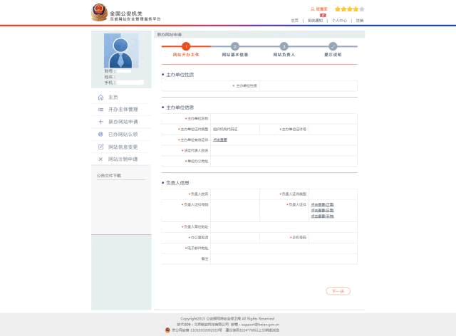 ¶þ¡¢µÇ¼ϵͳÒԺ󣬰´²½ÖèÌîÐ´ÍøÕ¾Ö÷°ìµ¥Î»ÐÅÏ¢¡¢¸ºÔðÈËÐÅÏ¢¼°ÍøÕ¾ÐÅÏ¢£¬½øÐÐÌá½»