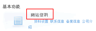 2¡¢½øÈë¹ÜÀíÖ÷Ò³ºó£¬ÔÚ»ù±¾¹¦ÄÜÄÇÀïµã»÷¡°ÍøÕ¾×ÊÁÏ¡±