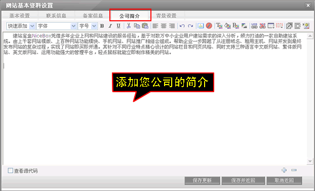 6¡¢ÉÏ´«Í걸°¸Îļþµã»÷¡°¹«Ë¾¼ò½é¡±