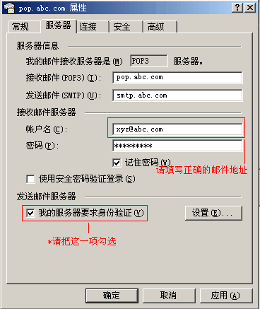 ¡¡¡¡Çëµã»÷·þÎñÆ÷Ñ¡ÏÌîдÕýÈ·µÄÓʼþµØÖ·£¬°Ñ¡°ÎҵķþÎñÆ÷ÒªÇóÉí·ÝÑéÖ¤¡±ÕâÒ»ÏîÑ¡ÉÏ¡£