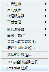 2¡¢ÔÚ¡±¹¤¾ß¡°²Ëµ¥ÀïÑ¡Ôñ¡±InternetÑ¡Ïî¡£